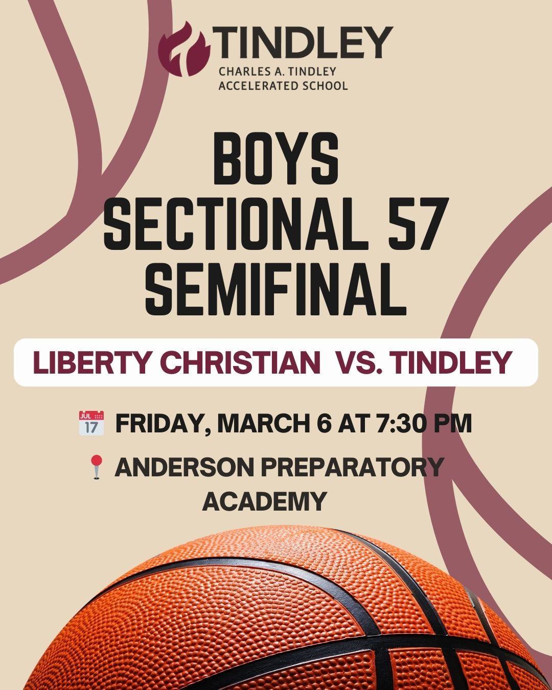 The Tindley varsity boys basketball team will compete in the IHSAA Class 1A Sectional #57 Semifinal against Liberty Christian.